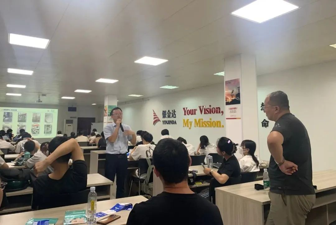 鄭州大學材料學院120名學生,在老師的帶領下先后到達銀金達開展兩期實習活動。校企雙方明確了在新材料研發(fā)、人才培養(yǎng)等方面的合作方向。在校企雙方精心組織下,見習活動以講師授課、現(xiàn)場培訓、總結分享等多樣化形式展開。使學生了解銀金達聚酯材料生產(chǎn)工藝流程與銀金達完整產(chǎn)業(yè)鏈優(yōu)勢,把理論知識和實際生產(chǎn)情況結合起來,對工作崗位有更直觀深入的了解和認識,提升了企業(yè)品牌影響力,為精選優(yōu)秀畢業(yè)生做好鋪墊。