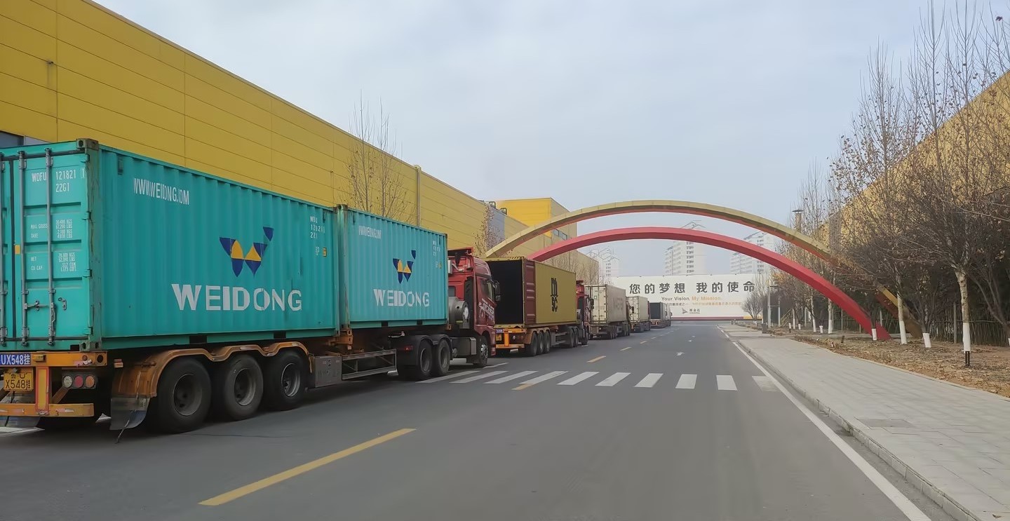 清晨,當(dāng)?shù)谝豢|陽(yáng)光灑在倉(cāng)庫(kù)大門上時(shí),繁忙景象如同洶涌的浪潮般展開(kāi),公司倉(cāng)儲(chǔ)人員提前上崗、鉚足干勁,只為迎接今日發(fā)貨任務(wù)。外貿(mào)集裝箱車輛整齊有序地排列在廠區(qū)內(nèi),一片熱火朝天的景象,當(dāng)日須裝箱并將發(fā)貨11個(gè)貨柜,發(fā)貨量達(dá)200余噸,這一數(shù)字創(chuàng)下了歷史新高,成功打響了2025年的開(kāi)門紅首戰(zhàn)。
