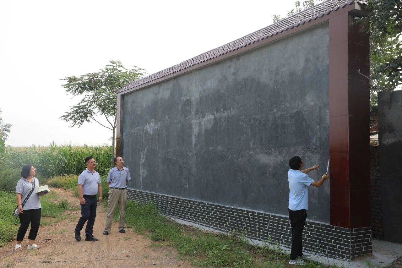 新鄉(xiāng)市職業(yè)技術(shù)學(xué)院美術(shù)教授侯壯莊、衛(wèi)輝市委黨校原副校長侯秋莊對文化墻和舞臺背景墻美術(shù)設(shè)計(jì)提出專業(yè)意見和建議。